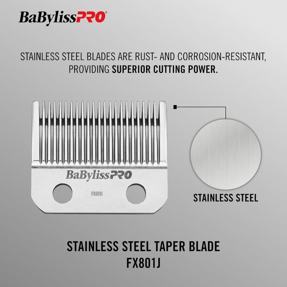 This Stainless Steel Taper Blade FX801J can be used with any FX870, FXF825, or FX673 clipper model. Use it for a precise, clean cut. fits all 2-hole blade systems.