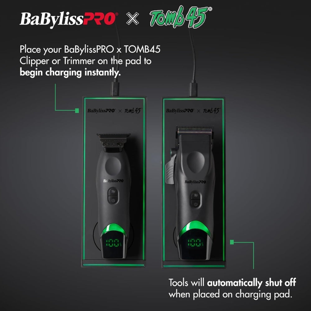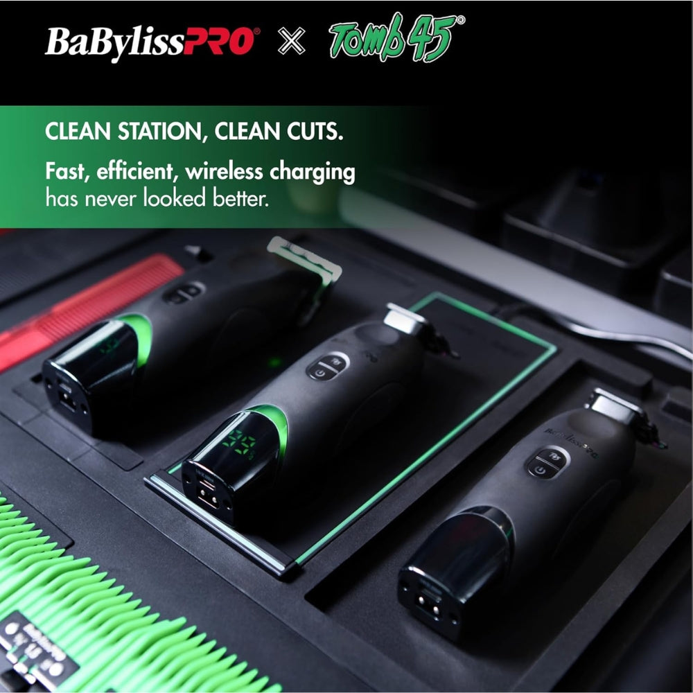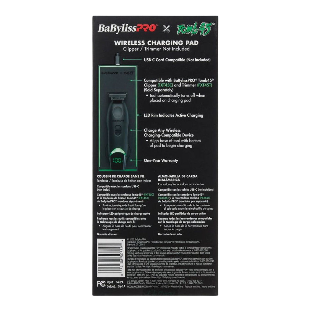 The FXT45MAT wireless charging station, a collaboration between Babyliss PRO and Tomb 45, delivers fast, effortless charging for your tools. Compact, stylish, and ultra-convenient, it optimizes your workspace and daily performance.