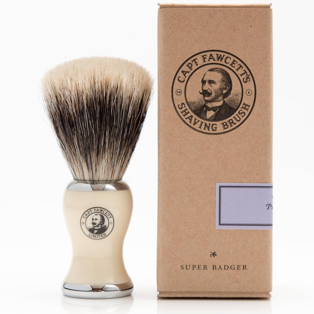 Captain Fawcett’s traditional 'Super' badger shaving brush will produce a luxuriant, rich & voluminous lather enabling the closest of wet shaves. The Captain's favoured 'Super' badger hair shaving brush which accompanied him on many adventurous missions has now been faithfully reproduced and is available for the first time in over a century.