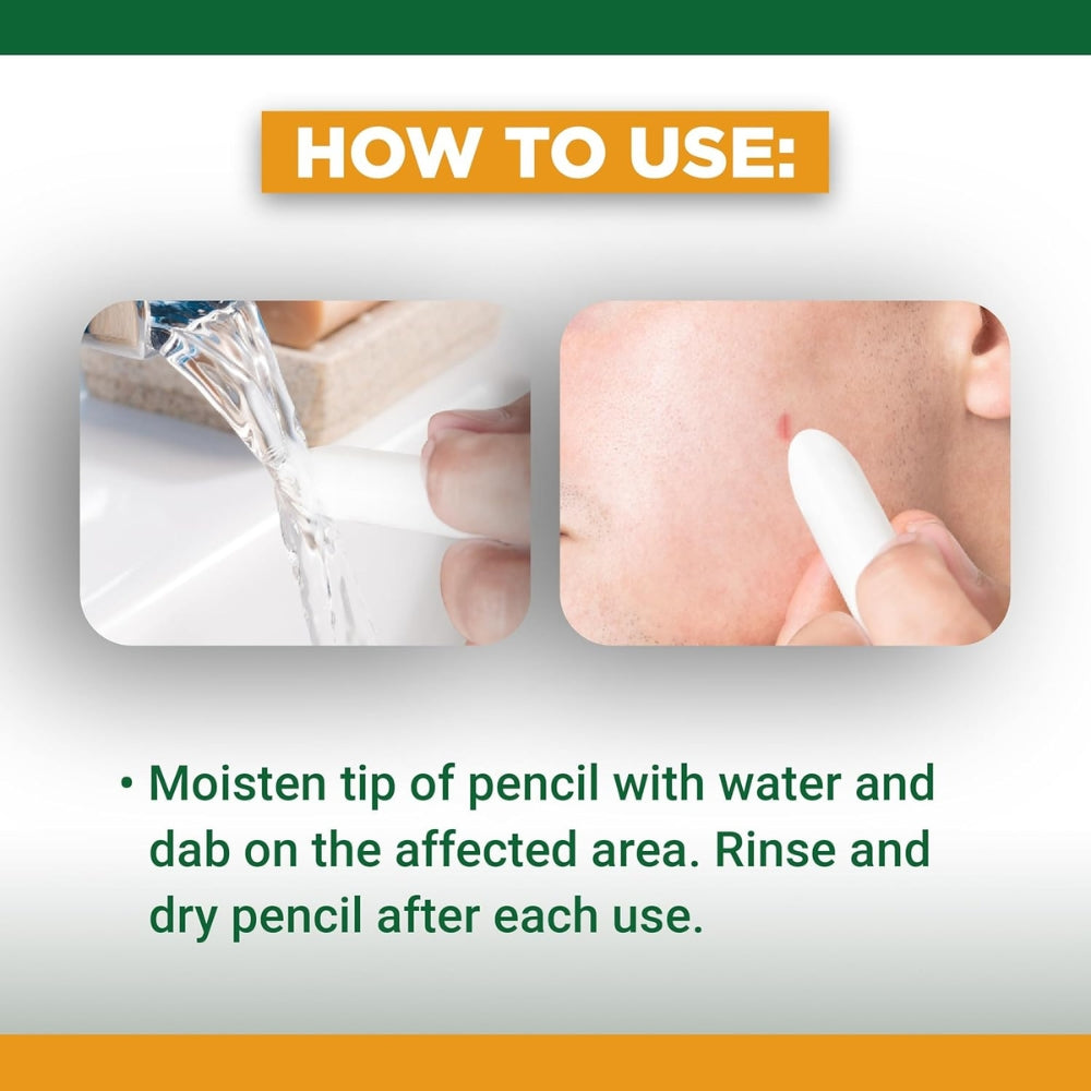 Moisten tip of pencil with water. Dab on affected areas. Rinse and dry pencil after each use.