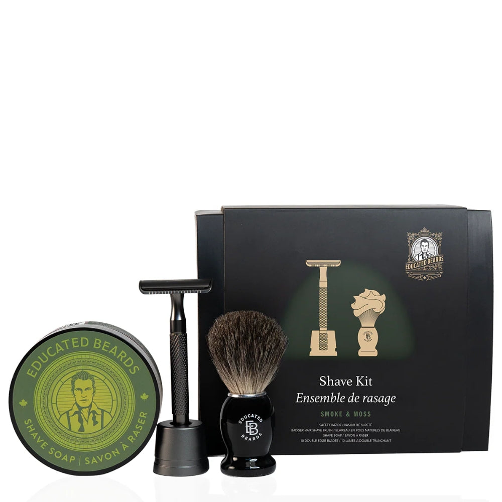 L'ensemble de rasage Smoke & Moss Shave Kit de Educated Beards a été pensé pour les hommes qui recherchent l’excellence dans leur routine de soins. Il transforme le rasage quotidien en un rituel sophistiqué, précis et agréable. Ce coffret de 5 pièces offre une solution complète pour un rasage de qualité supérieure, tout en respectant la peau et l’environnement.