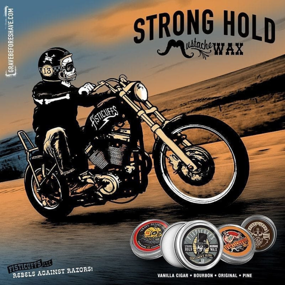Fisticuffs Gentlemen's Blend Bourbon strong hold mustache wax is exactly what your mustache expects. Fisticuffs Mustache Wax keeps you looking great, while deeply nourishing your hair for healthy growth and repairing split ends.