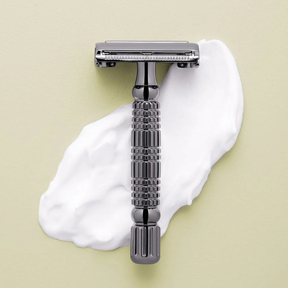The perfect gift for men who enjoy a traditional shave. Includes a synthetic bristle shaving brush, a double‑edge safety razor with butterfly opening for safe and easy blade changes, a set of five Swedish stainless steel razor blades, a blade bank for safe disposal, and a leather razor sheath for travel.