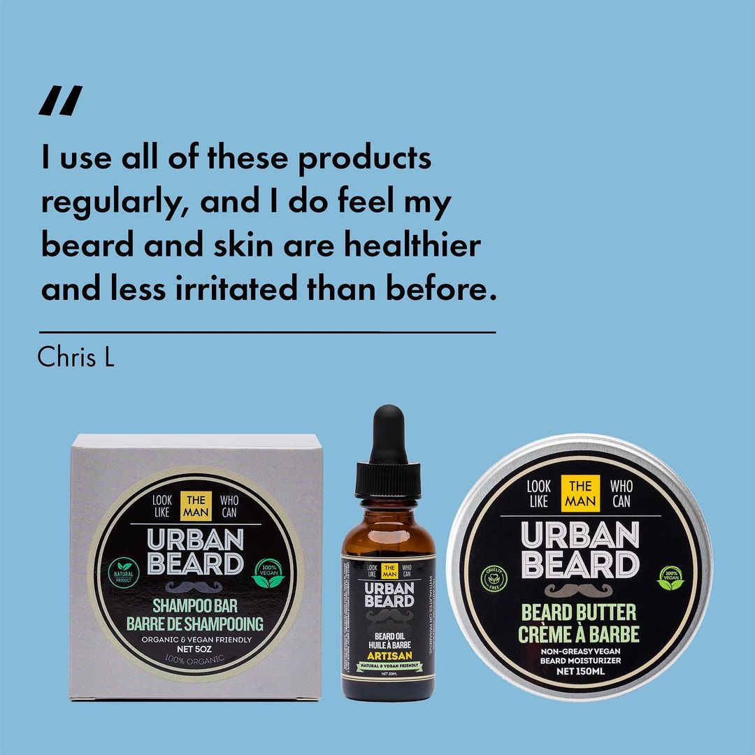 Shampoo Bar For Men. When used on the beard, traditional shampoo will leave your skin and hair, dry. Facial soap leaves a sticky residue behind. So we designed the Urban Beard Shampoo Bar. Our shampoo gently cleanses both the beard and the sensitive skin underneath, leaving both beard and face clean, soft and smelling great.