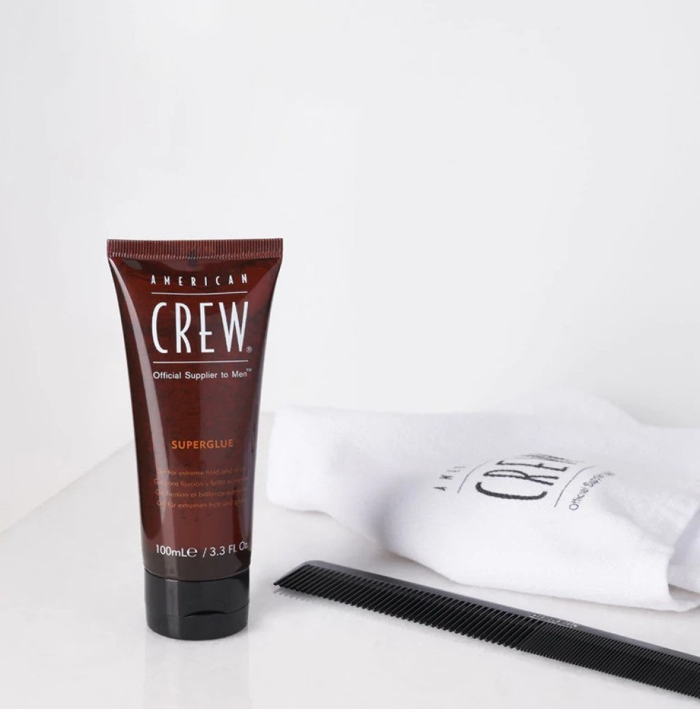 Le gel coiffant "SuperGlue" de American Crew, crée des styles jamais possibles auparavant avec une tenue élevée, une brillance élevée et une haute définition.