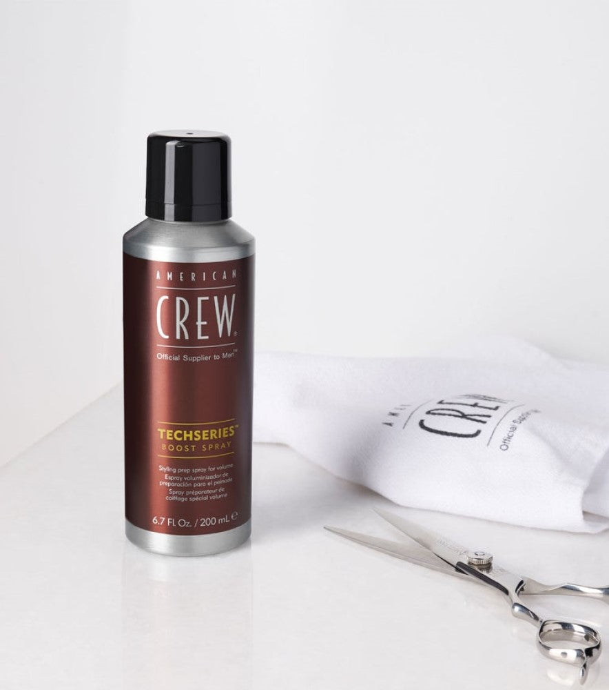Le spray volume "TechSerie Spray Boost" de American Crew, est une préparation coiffant unique en son genre qui booste les cheveux dès la racine et aide le styliste à préparer les cheveux pour créer un nombre illimité de looks. Pour du volume avec un fini mat.