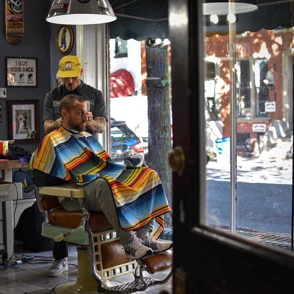 Cape Gang - Cape de barbier "Sarape" col en lycra extensible et fermetures à boutons-pression (140cm/55" x 160cm/63") - Bleu