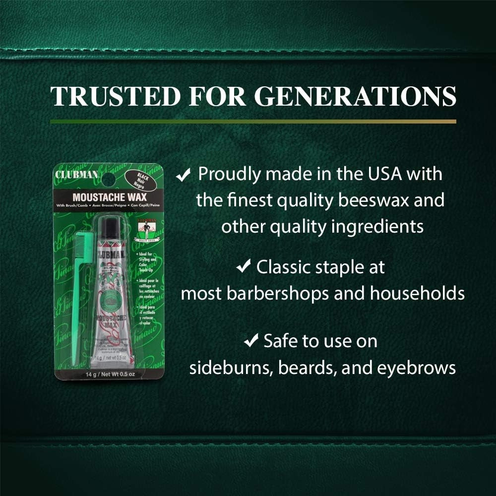 Cire à moustache avec brosse peigne - Noir (14g/0.5oz)