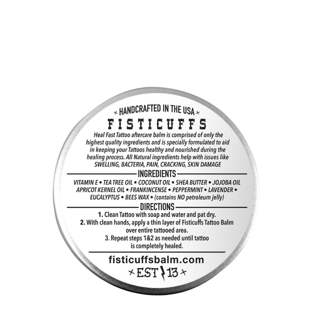 Le baume de soin pour tatouage "Tattoo Balm Heal Fast Tattoo" de Fisticuffsest composé uniquement d'ingrédients de la plus haute qualité et est spécialement formulé pour aider à garder vos tatouages en bonne santé et nourris pendant le processus de guérison.