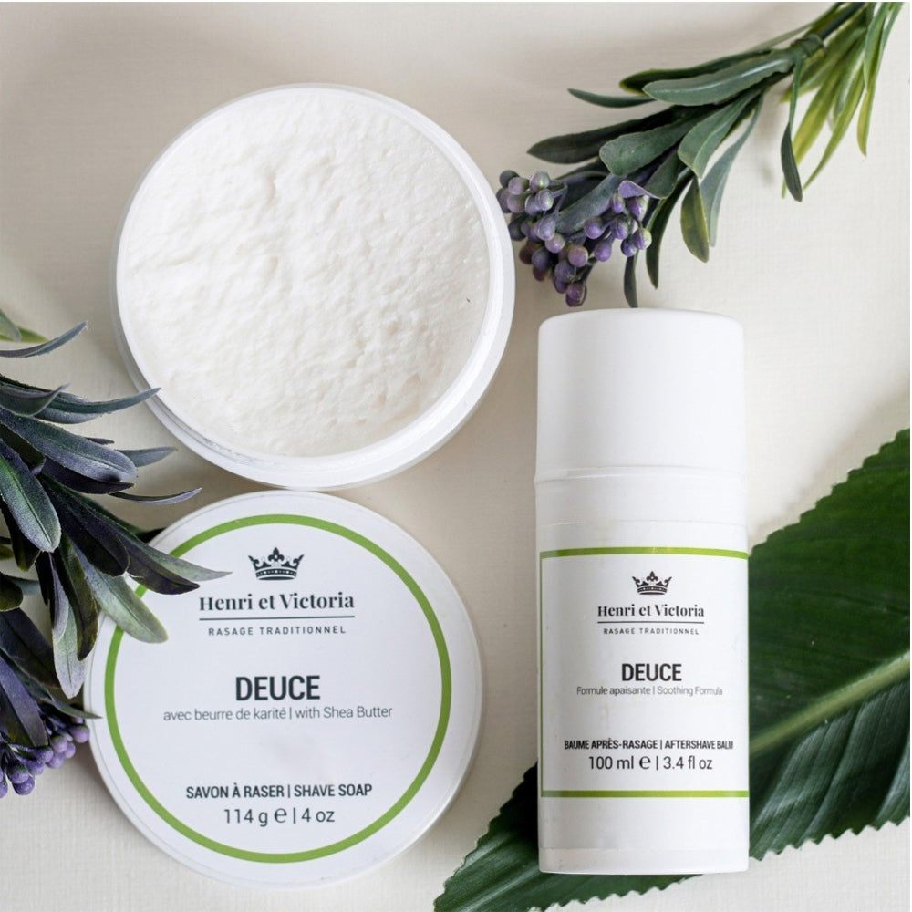 Le savon à raser "Deuce" d'Henri et Victoria, un indispensable du toilettage traditionnel pour chaque homme qui savoure le plaisir d’un rasage humide classique.