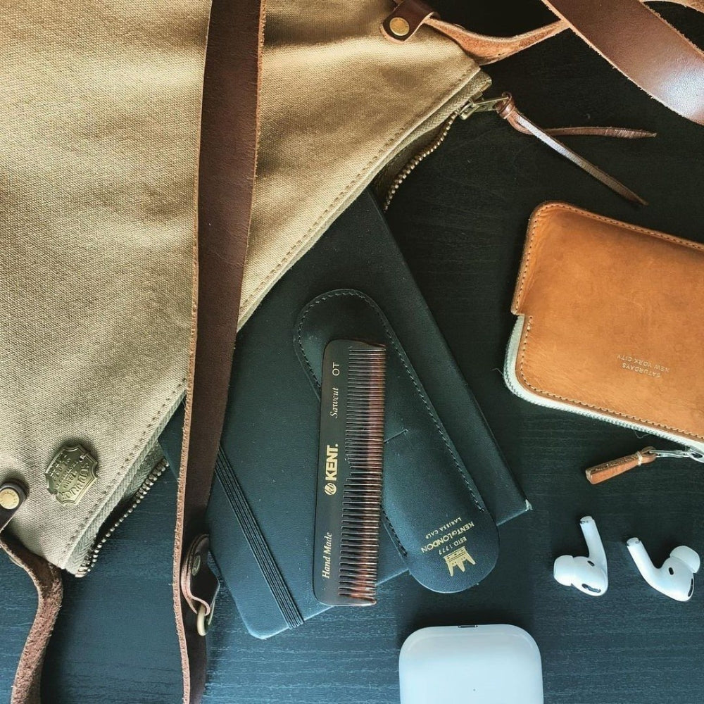 KENT. - Peigne de poche avec étui de cuir - Pour cheveux fins (112mm/4.4") - Nu 22 Case