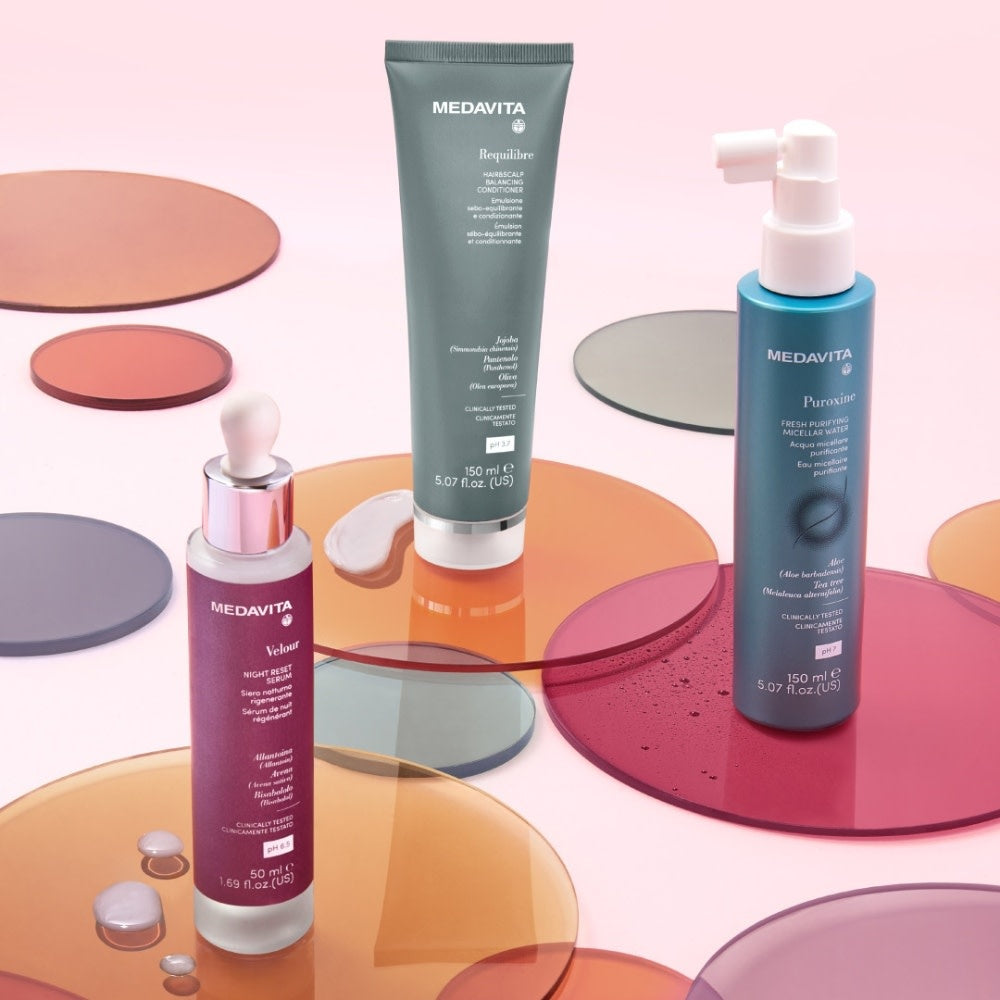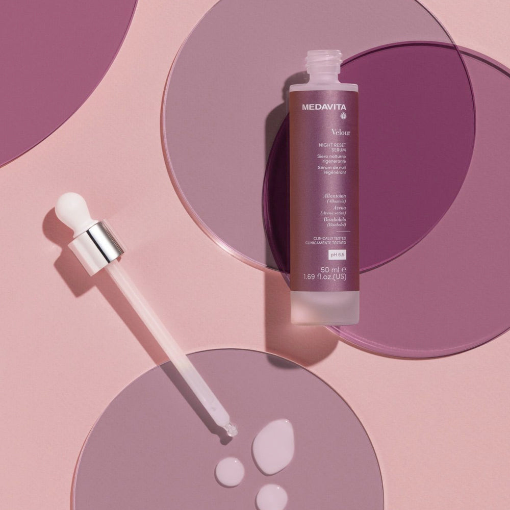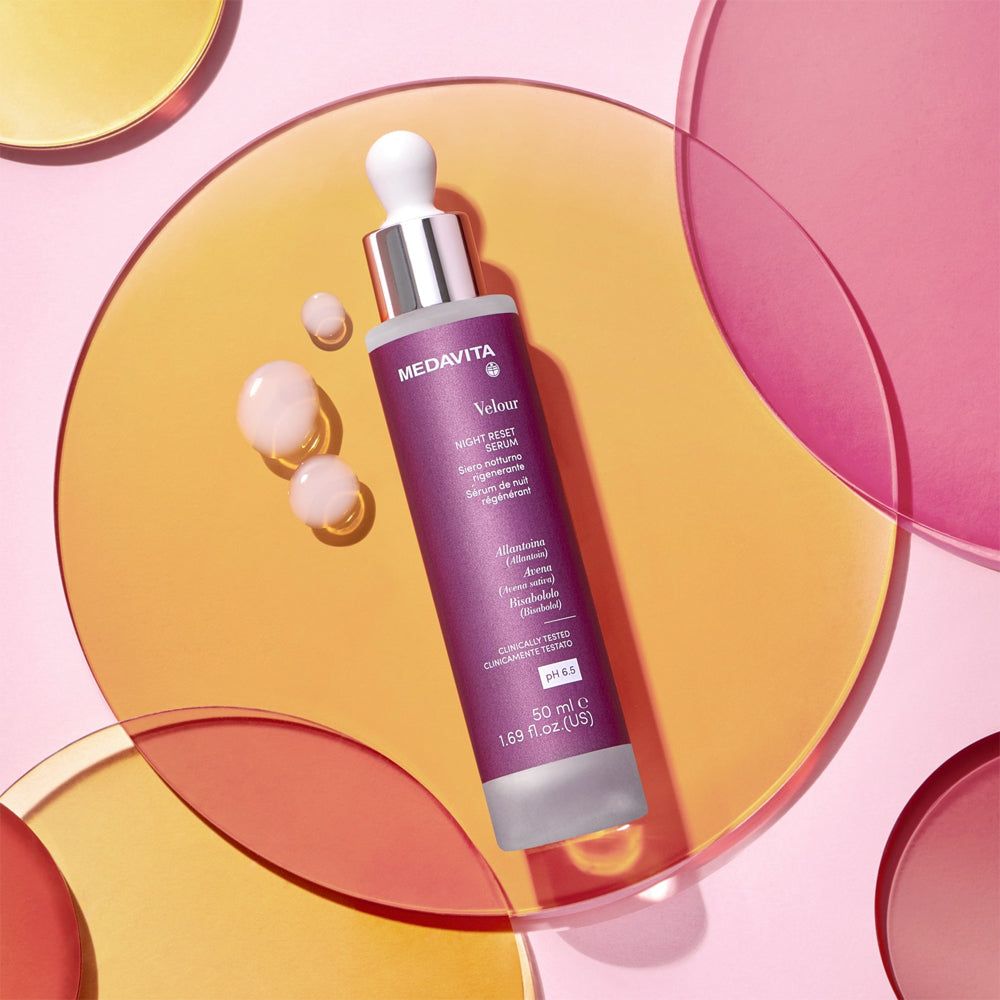 Le sérum de nuit régénérant "Velour Night Reset Serum" de Medavita est un soin apaisant pour le cuir chevelu et le visage à appliquer en routine du soir. Pendant la nuit, il hydrate et apaise le cuir chevelu et la peau du visage, grâce à sa formule particulièrement indiqué pour les cuirs chevelus sensibles, enrichie d’extrait d’avoine, d’acide glycyrrhétinique, d’allantoïne et de bisabolol. Le matin, grâce à son action apaisante, anti-irritante et anti-rougeur, la peau...