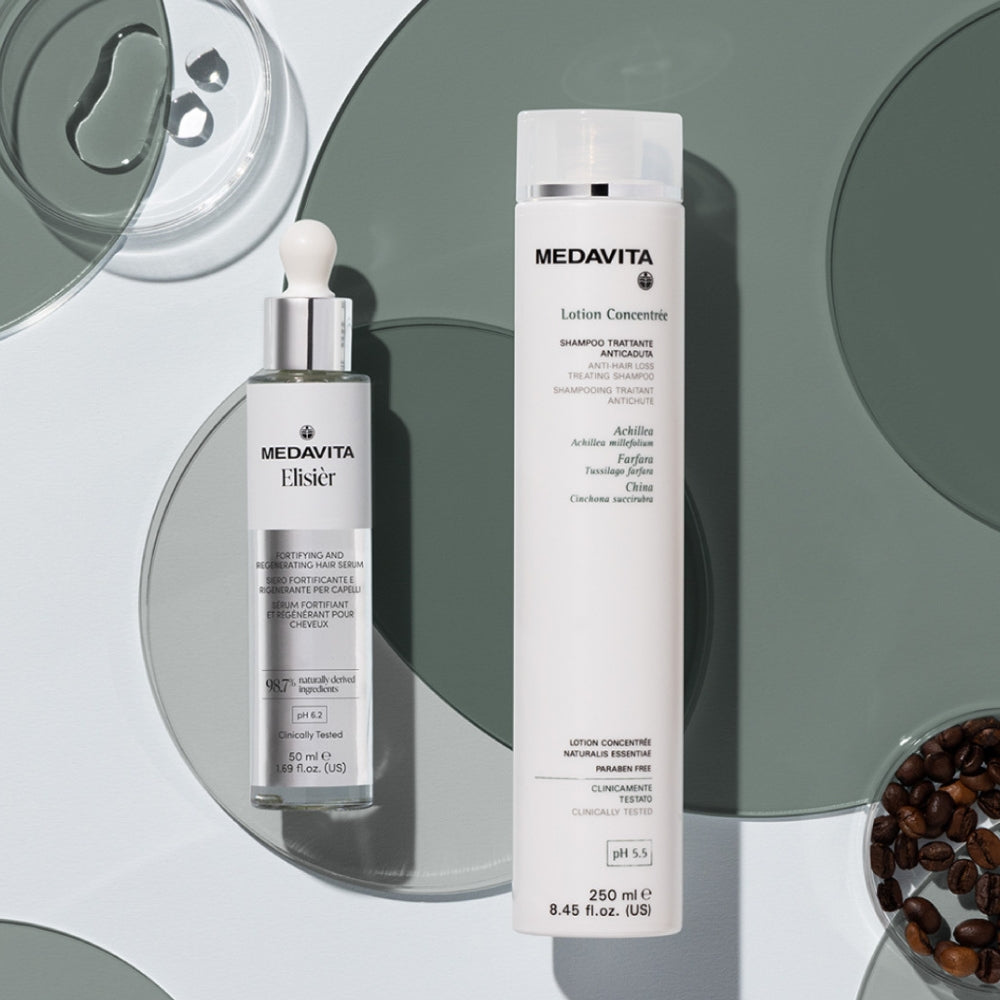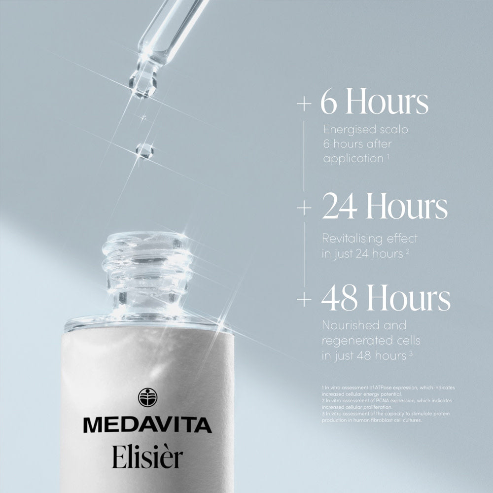Le sérum fortifiant et régénérant "Elisièr" de Medavita augmente la force, la résilience, la brillance et le volume des cheveux, préservant leur vitalité et leur beauté dans le temps. Convenant à tous les types de cuir chevelu, ceux ayant tendance à se dégarnir et à la chute de cheveux peuvent tirer un grand bénéfice de ce soin quotidien ciblé. Fait de 98,7% d'ingrédients naturels, il stimule et préserve le potentiel énergétique dont les cellules du...