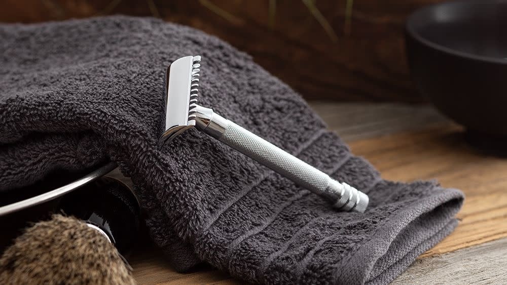 Maintenant, vous devez utiliser le rasoir MERKUR 25C. Le peigne à dents garantit que les poils plus longs sont coupés sans douleur et sans obstruer le rasoir. Cela en fait votre meilleur ami lors du rasage de la barbe et des poils.