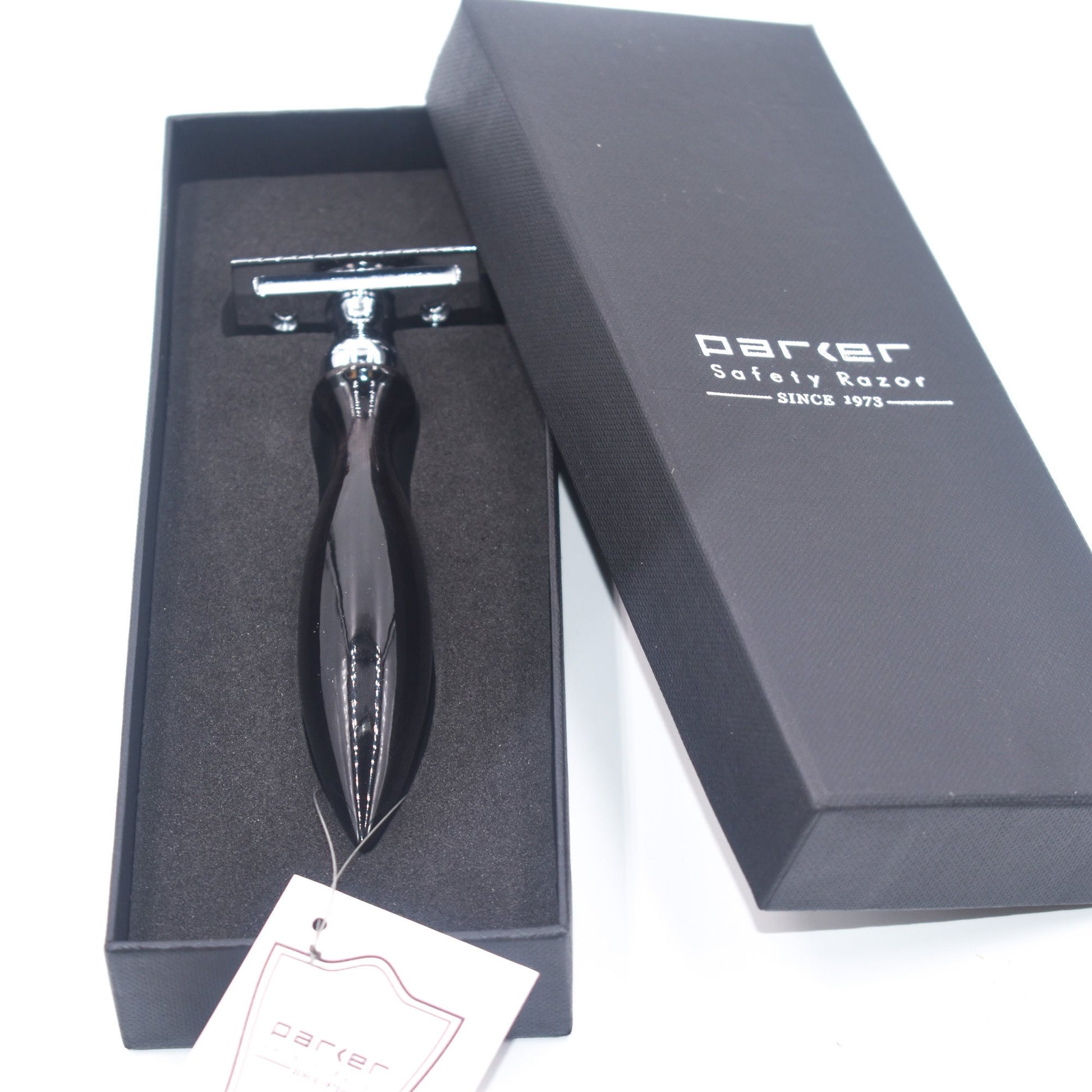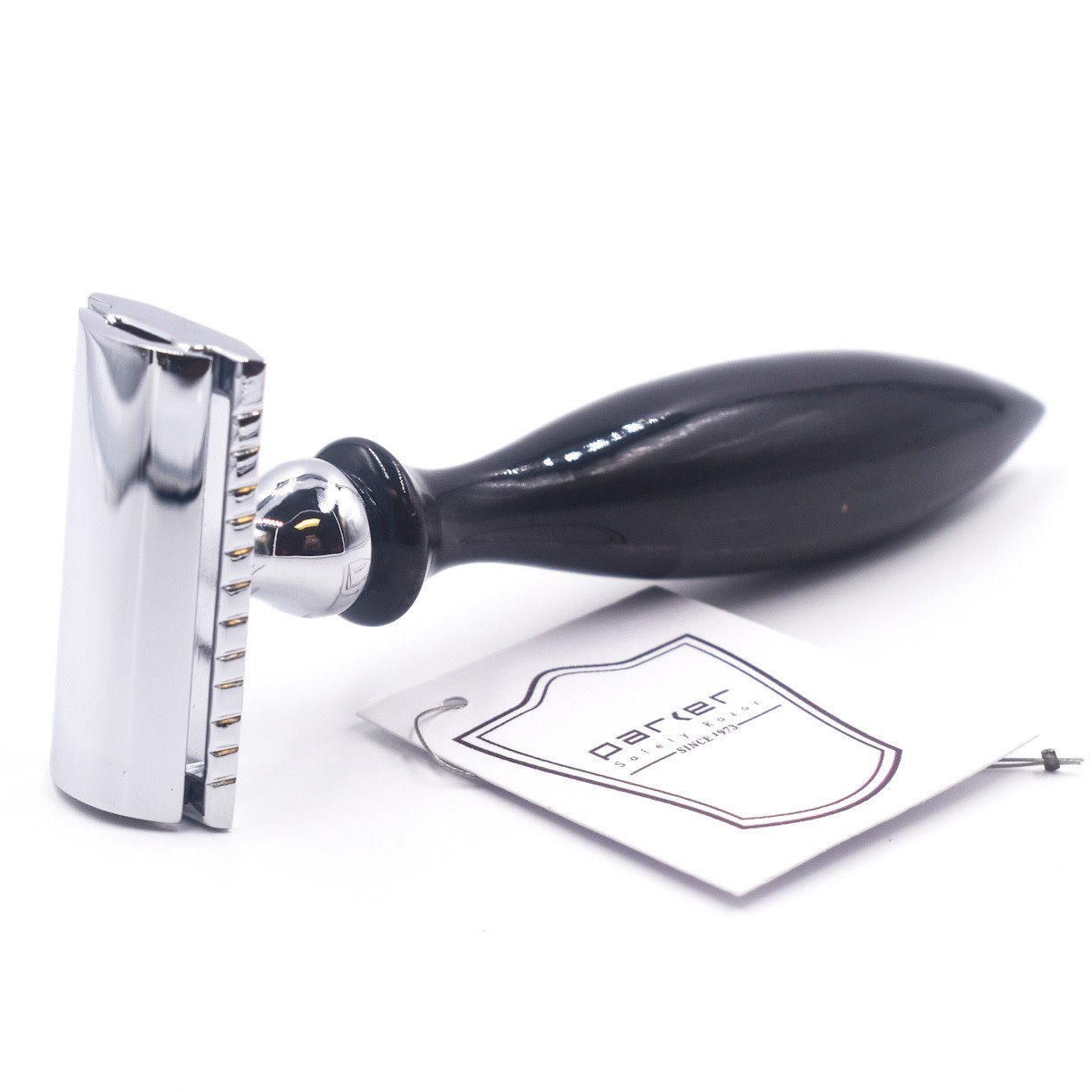 Le rasoir de sécurité à double tranchant Parker 12R combine la célèbre tête de rasoir de Parker avec l'opulence d'un véritable manche en corne de buffle sculpté à la main. La poignée est durable, belle et fonctionnelle. C'est un rasoir impressionnant à tous les niveaux.