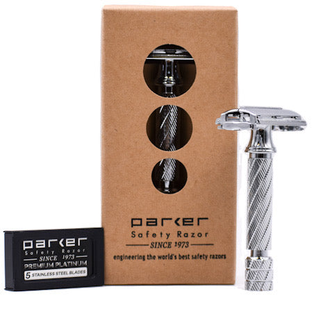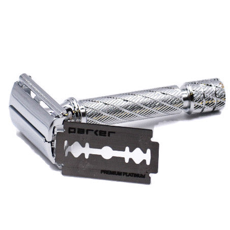 Le rasoir de sûreté 87R de Parker est un petit rasoir robuste doté de la célèbre tête Parker "Twist to Open" pour un rasage de près et confortable. Il s'agit d'un rasoir à manche court avec un rasoir classique de 3 pouces. Tourner le bouton au bas du rasoir il ouvrira les portes papillon pour une insertion facile de la lame. Sa poignée magnifiquement décorée est texturée pour offrir une prise sûre, même avec des mains savonneuses...