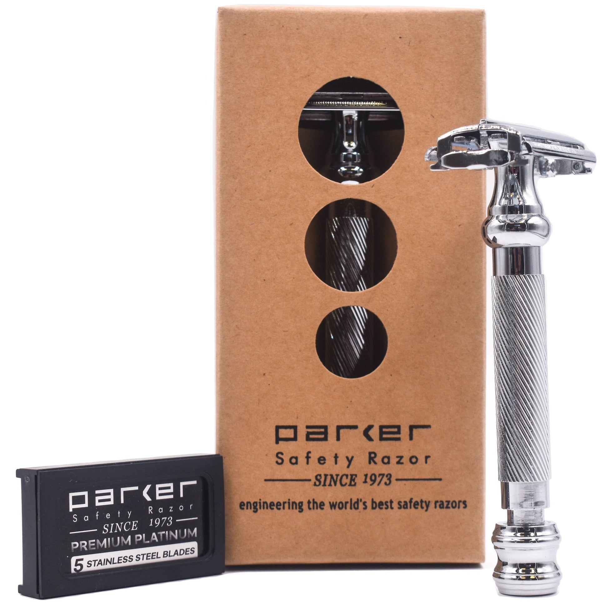 Le 99R de parker est un rasoir de sûreté extrêmement populaire. Ce rasoir robuste a été un succès immédiat en raison de la qualité de rasage impressionnante qu'il offrait. Le rasoir a une poignée moletée distinguée, une sensation de poids lourd et un mécanisme de porte papillon unique qui est activé en tournant le bouton au bas du rasoir.