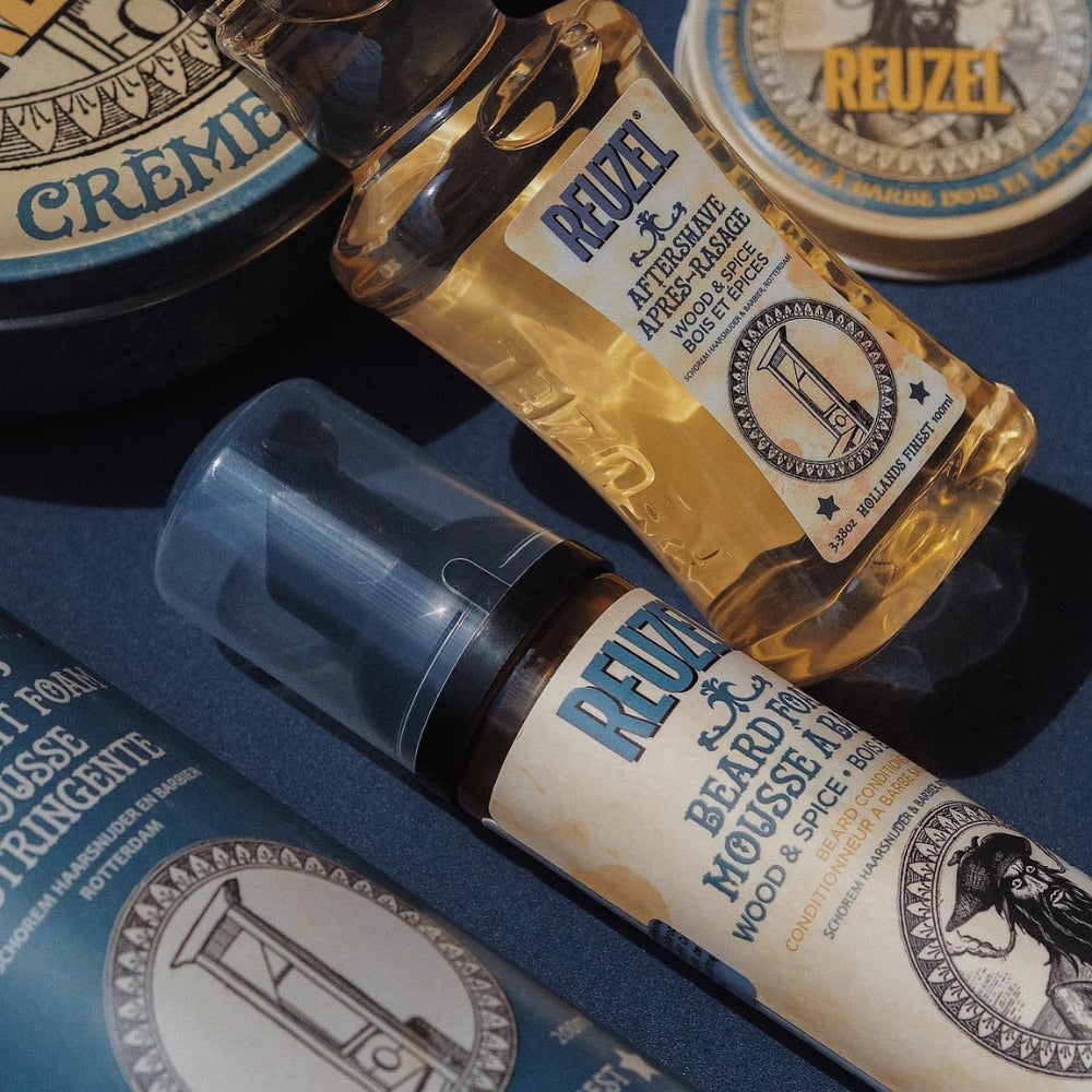 La mousse à barbe sans rinçage "Beard Foam Wood & Spice" de Reuzel, est idéal lorsque vos poils du visage sont ébouriffés ou développent une odeur trop masculine.