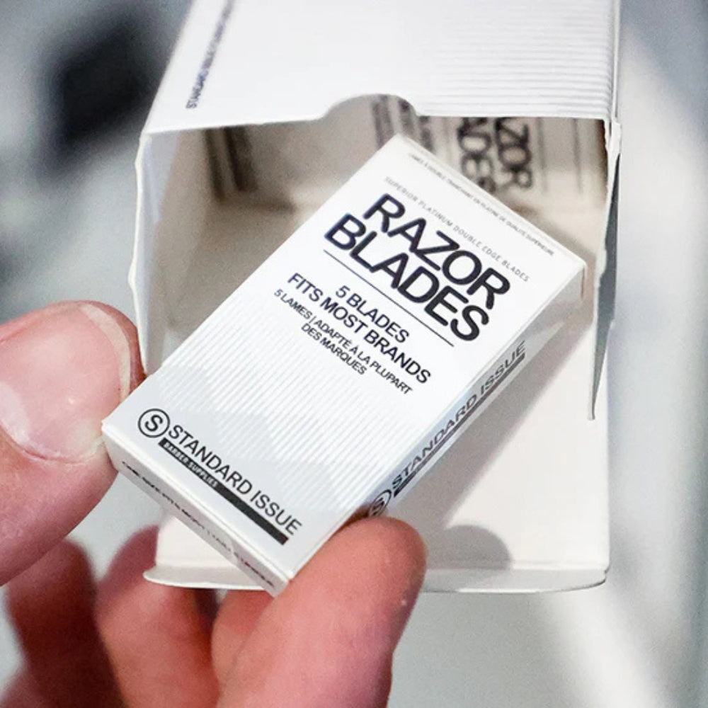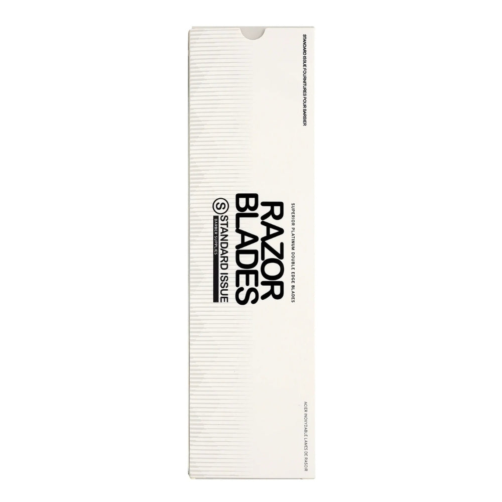 Les lames de rasoir à double tranchant "Superior Platinum Double Edge Blades" de Standard Issue, sont conçues pour offrir un rasage précis, confortable et durable. Fabriquées en acier inoxydable de qualité supérieure et revêtues de platine, elles garantissent une performance fluide et une excellente résistance à la corrosion. Chaque lame est emballée individuellement pour une hygiène optimale.