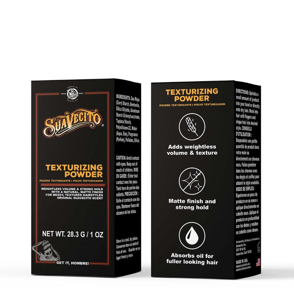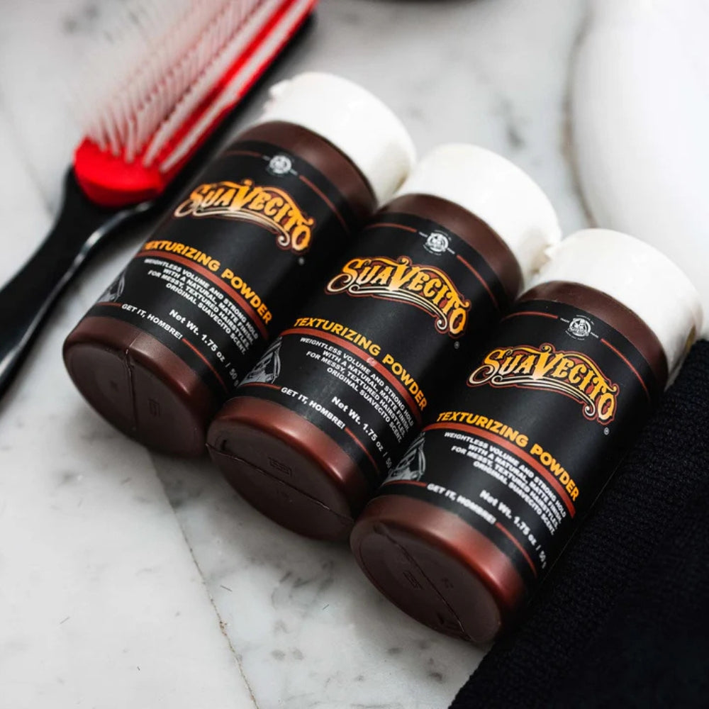 Parfois, nos cheveux peuvent sembler un peu plats et sans vie. La poudre capillaire texturisant "Texturizing powder" de Suavecito est un outil de coiffage essentiel que vous voudrez avoir dans votre arsenal de soins capillaires. Conçu pour ajouter du volume, créer de la texture et éliminer les impuretés de vos cheveux, il deviendra bientôt votre nouveau produit préféré. Son fini mat crée une tenue invisible qui durera toute la journée. Il a des propriétés antiagglomérants et...
