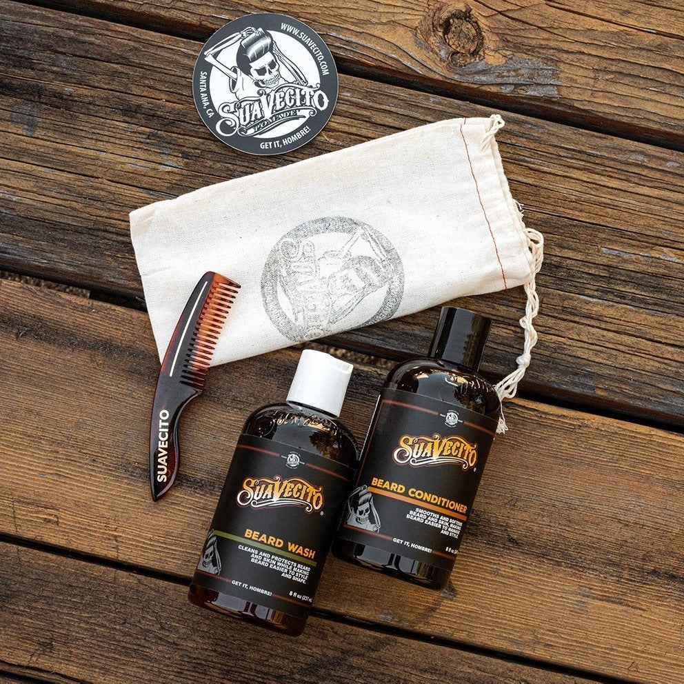 Le shampoing à barbe "Beard Wash" de Suavecito. Vous n'utiliseriez pas n'importe quel savon pour vos cheveux, alors pourquoi utiliseriez vous autre chose que notre shampoing pour votre barbe? Ce truc va rendre les poils de votre barbe propres et prêts à être coiffés.