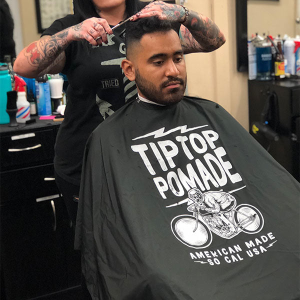 Cape de barbier "BoardTrack" longue avec 6 boutons poussoir (127cm/50" x 145cm/57") - Noir