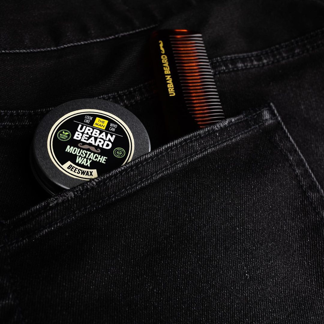 Notre cire à moustache est formulée pour apprivoiser et façonner les moustaches dans n'importe quelle forme tout en ajoutant de la brillance, un conditionnement en profondeur, de la force et une stimulation de croissance saine. Il ajoute également du volume et a une prise moyenne pour contrôler votre moustache. C'est un mélange d'huiles biologiques et de cire d'abeille, qui fournissent à votre moustache des nutriments pour la garder saine et épaisse.